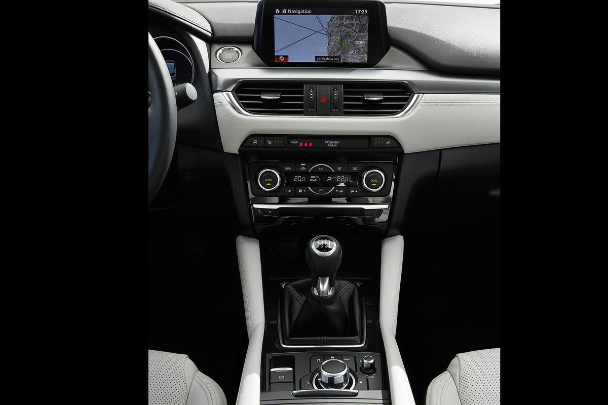 Gerade der Außenauftritt des Mazda 6 kann auf ganzer Linie überzeugen. Vorne aggressiv, seitlich dynamisch und hinten versöhnlich gestaltet, ist eigentlich für jeden Autofreund etwas dabei. Selbst neidgeplagten Schwiegereltern tritt man mit diesem galanten Kombi nicht auf den Schlips. So richtig geht dem Enthusiasten aber das Herz auf, wenn er sich in den neuen Mazda 6 hineinsetzt. Das Cockpit ist mit viel Liebe zum Detail verarbeitet worden. Alles sitzt, passt und hat Luft. Der überwiegende Teil der Innenraum-Verkleidungen ist dick ausgeschäumt – Hartplastik findet man nur selten. Die von uns getestete Nakama-Intense-Ausstattung beinhaltet sogar Leder-Applikationen im Armaturenbrett. Negativ aufgefallen sind uns lediglich das etwas zu drahtige Lenkrad und der wacklige Mitteltunnel mit seiner quietschenden Armauflage.