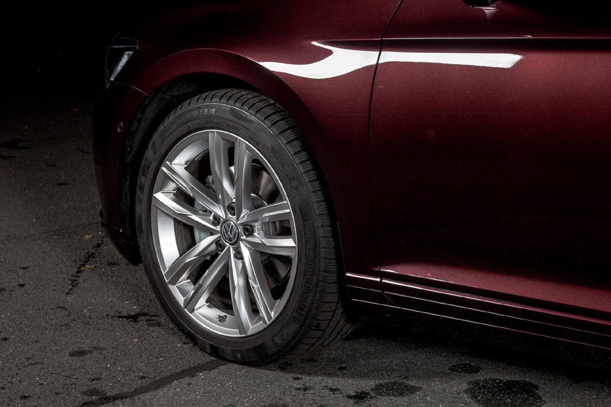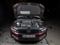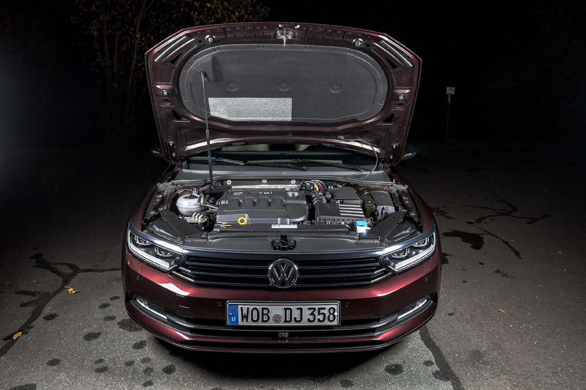 {1}Wer dann aber selbst zurückschaltet und den Passat etwas treiben will, der erlebt in der Fahrprofilauswahl eine angenehme Überraschung. Das DCC-Fahrwerk zeigt sich in der Sport-Stellung erstaunlich auf der Höhe. Es ist nicht zu straff, schlägt aber auch nie durch. Die Wankbewegungen werden deutlich reduziert und in Kombination mit der weniger unterstützten Lenkung ist der große Volkswagen wirklich erfreulich agil. Was natürlich auch an der recht großzügigen 235er Breitbereifung auf den 18-Zoll Felgen liegt.