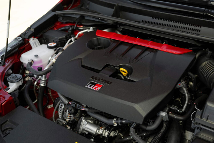 Angetrieben wird der GR Corolla von einem kompakten, aber hochpotenten G16E-GTS 1,6-Liter-Dreizylinder-Turbomotor. Mit 300 PS bei 6.500 U/min und einem Drehmoment von 460 Nm liefert er beeindruckende Fahrleistungen. Hochfeste Bauteile und ein leistungsstarker Turbolader sorgen für Langlebigkeit und konstanten Vortrieb.