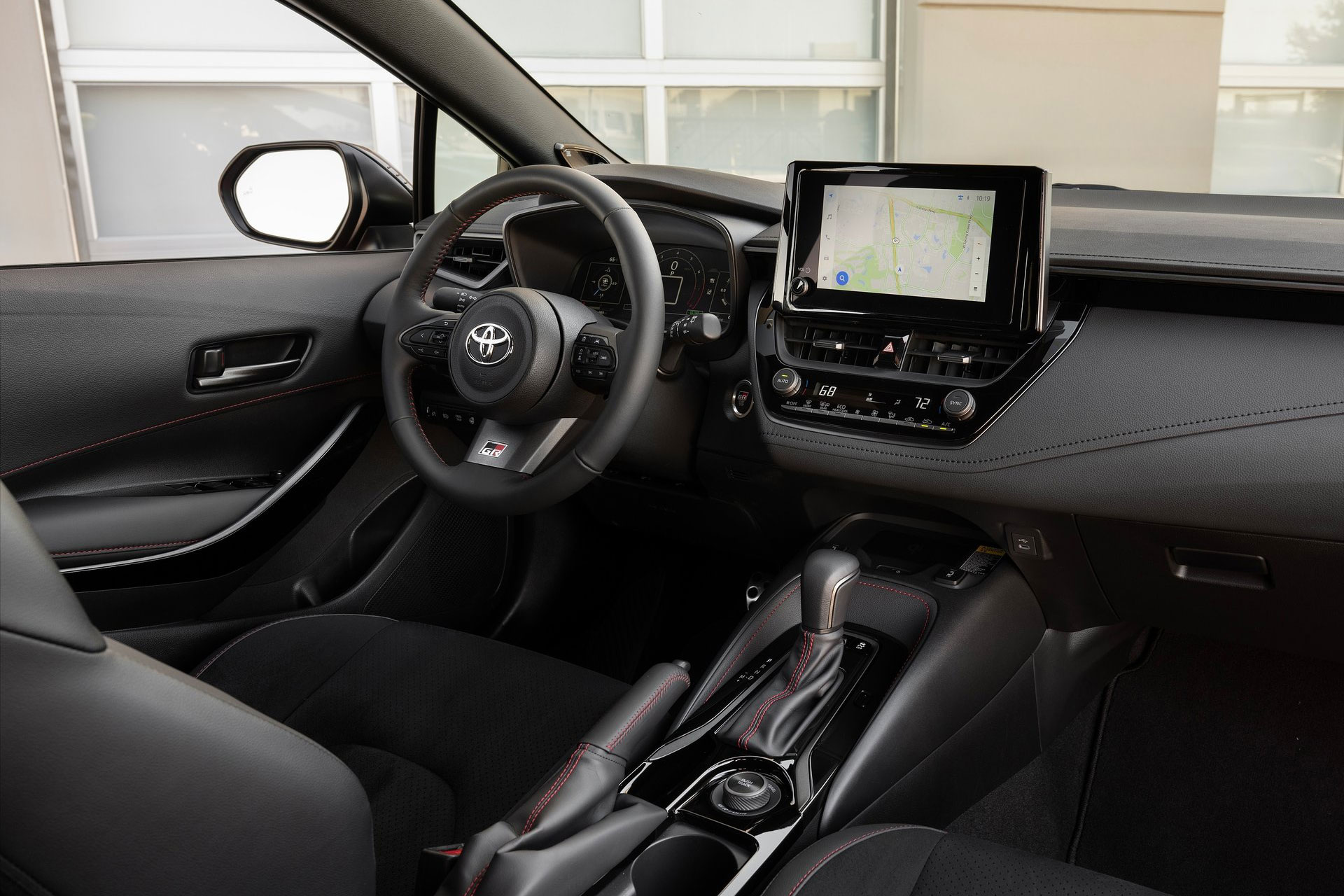 Der GR Corolla wird im kommenden Modelljahr in zwei attraktiven Ausstattungslinien angeboten: GR Corolla und GR Corolla Premium Plus. Schon die Basisversion überzeugt mit sportlichen Details wie einer gewölbten Motorhaube samt schwarzglänzenden Lüftungsöffnungen, einem farblich abgestimmten Spoiler sowie markanten, schwarz glänzenden 15-Speichen-Leichtmetallfelgen. Im Innenraum setzen Sportsitze mit hochwertigem Brin Naub®-Wildleder und eleganten grauen Kontrastnähten Akzente.