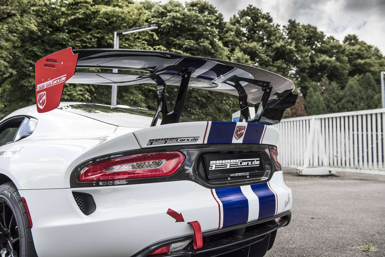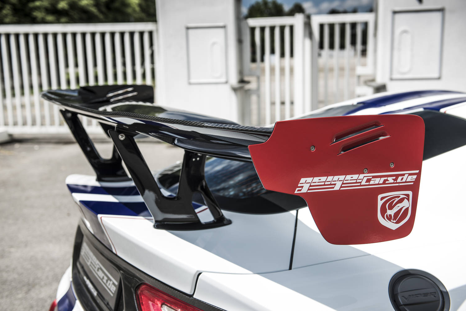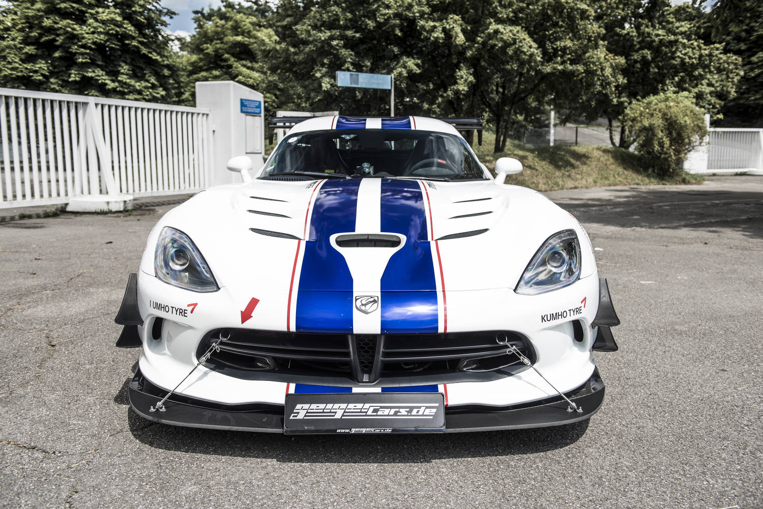{1}Gereicht hat das Karl Geiger von GeigerCars in München noch nicht. Und auch wenn die Viper nach aktuellem Stand nächstes Jahr eingestellt wird, haben die Jungs kürzlich ein umfangreiches Tuningpaket für den American Club Racer vorgestellt. Die Straßenzulassung der Serienvariante bleibt dabei selbstverständlich erhalten – vorrangig waren Änderungen an der Technik der V10-Schlange.