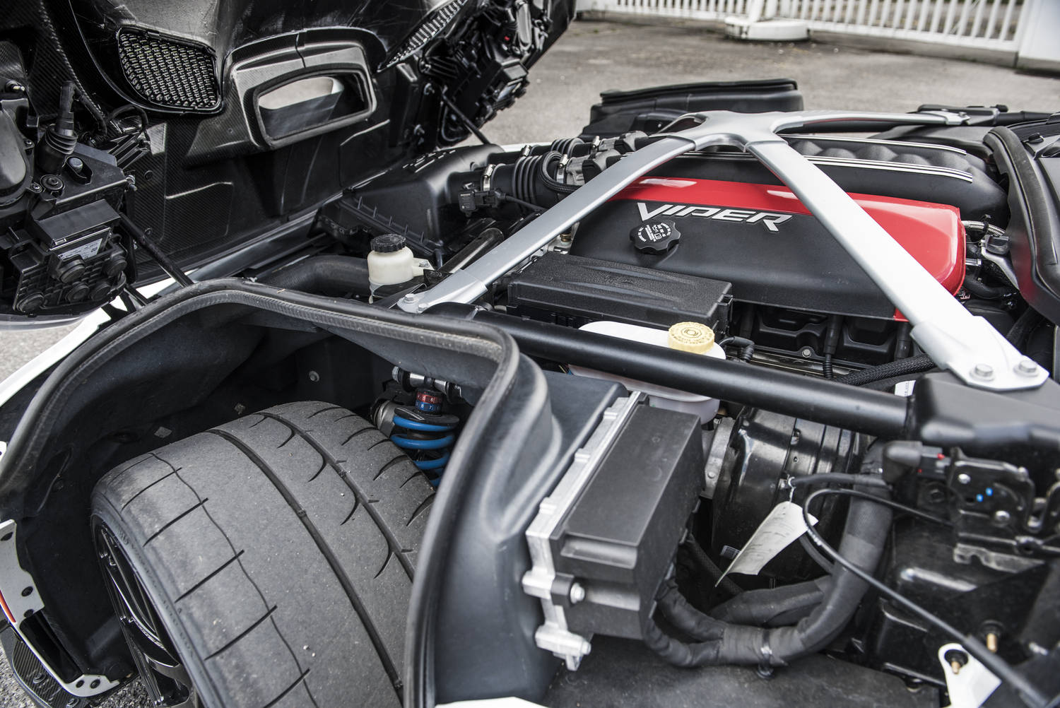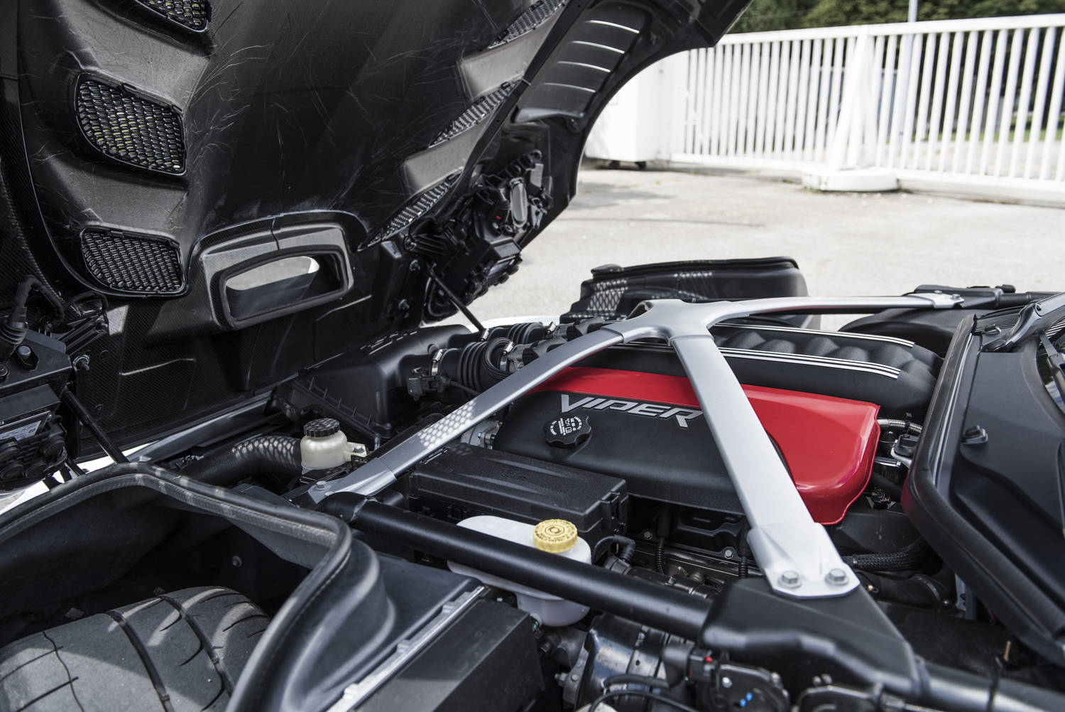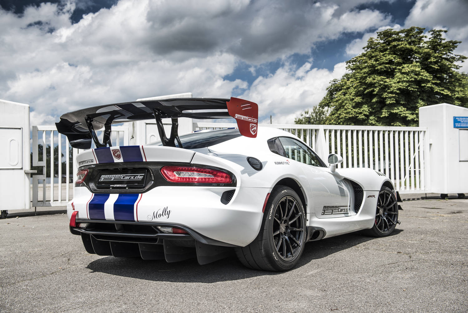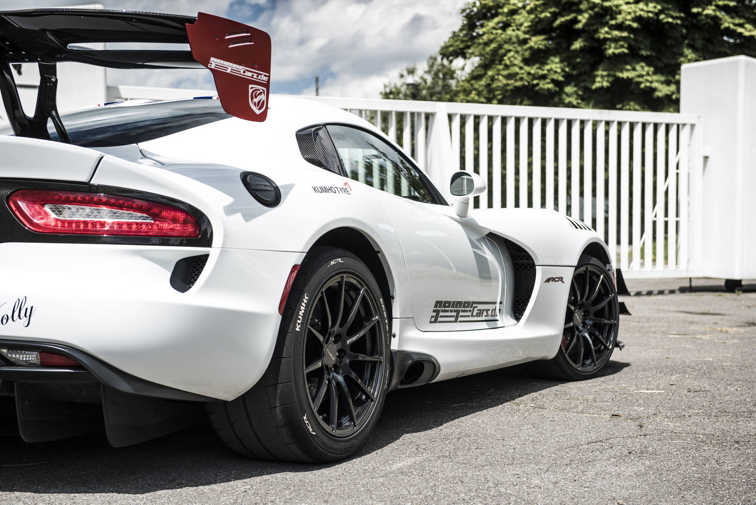 {1}Gereicht hat das Karl Geiger von GeigerCars in München noch nicht. Und auch wenn die Viper nach aktuellem Stand nächstes Jahr eingestellt wird, haben die Jungs kürzlich ein umfangreiches Tuningpaket für den American Club Racer vorgestellt. Die Straßenzulassung der Serienvariante bleibt dabei selbstverständlich erhalten – vorrangig waren Änderungen an der Technik der V10-Schlange.