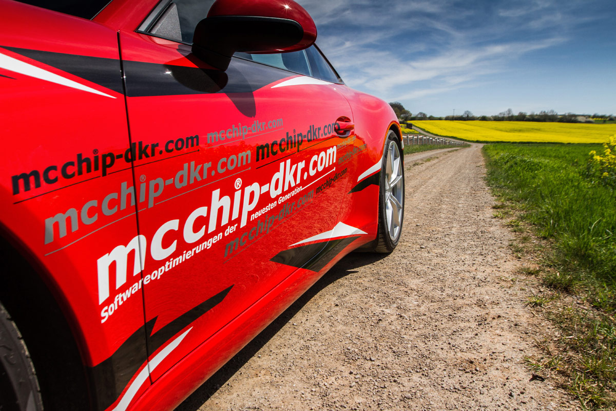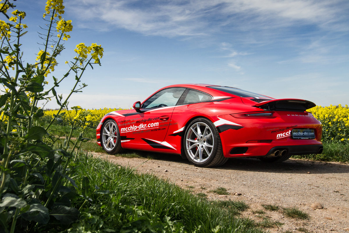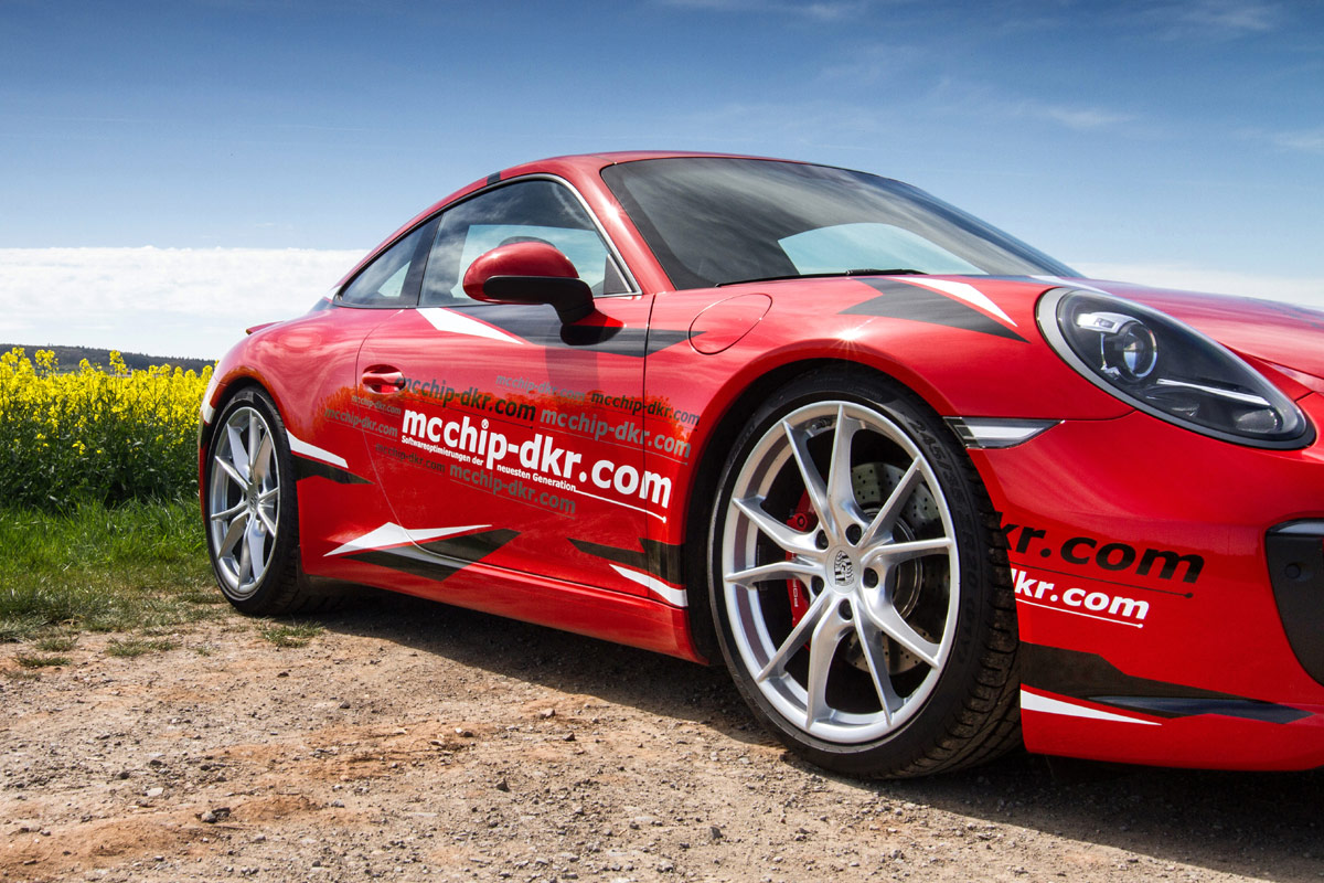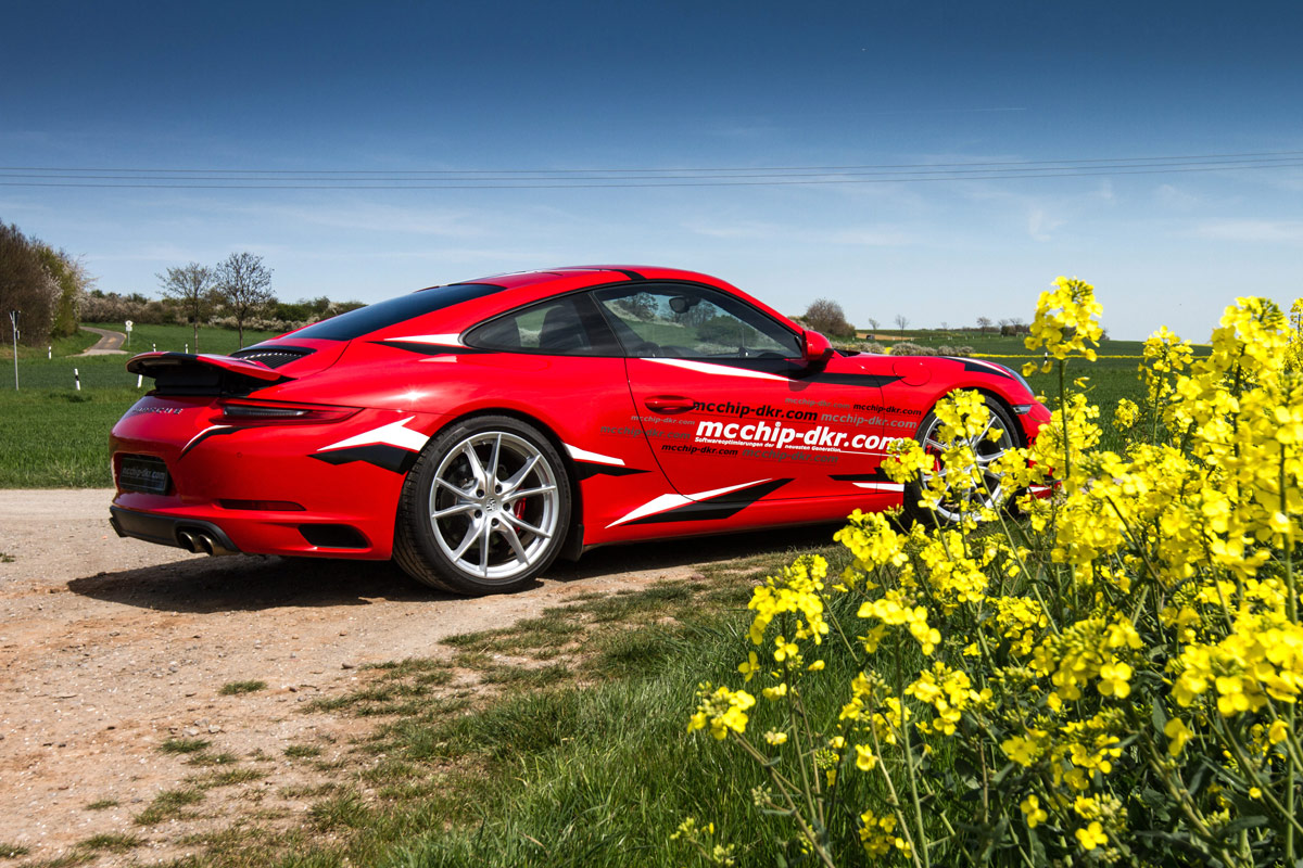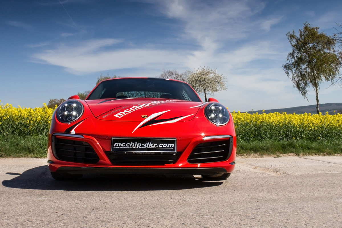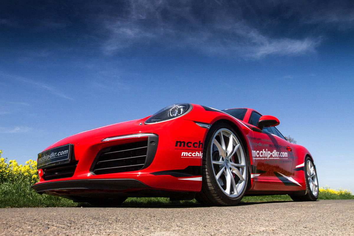 Kaum ist der neue Porsche 911 Carrera auf dem Markt, bietet das Team von Mcchip-DKR auch schon die ersten Leistungssteigerungen für das inzwischen von einem Turbomotor befeuerte Modell aus Zuffenhausen an. Leistet der Dreiliter-Turbo-Boxer im Heck des Carrera S serienmäßig noch 420 PS und 500 Nm, verlassen die Patienten des Tuners dessen Hallen nach dem Aufspielen der neuen Steuersoftware mit 475 PS und 570 Nm.