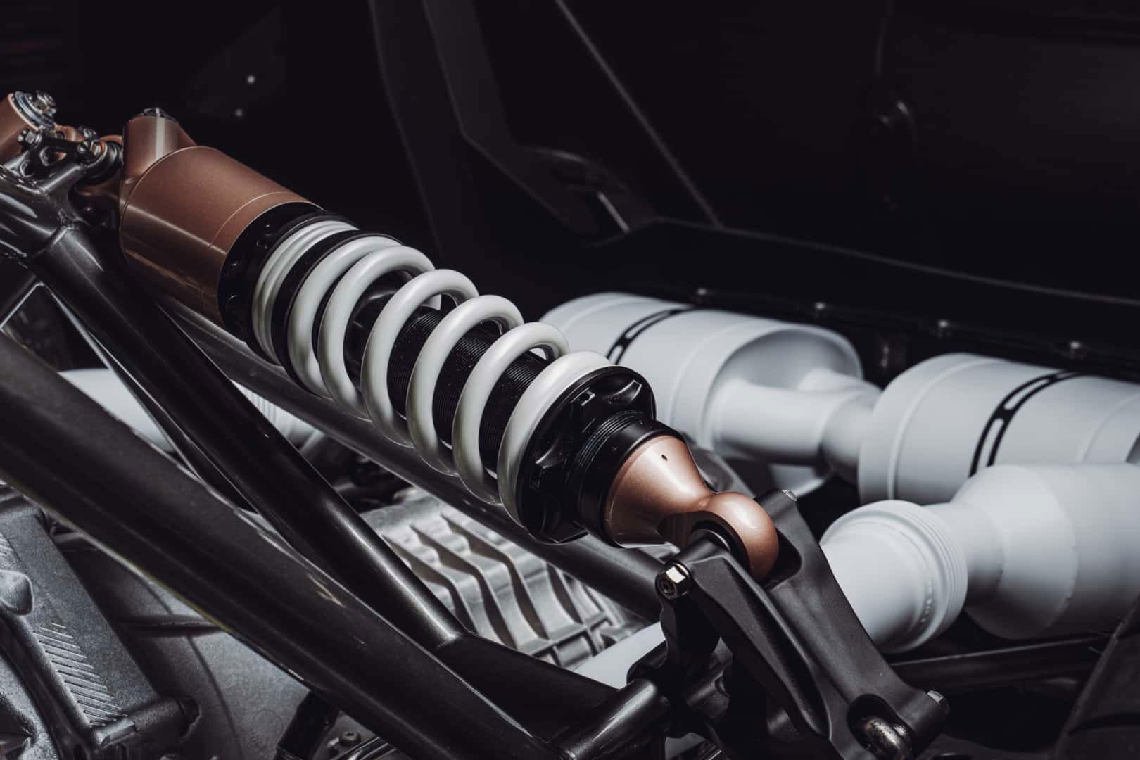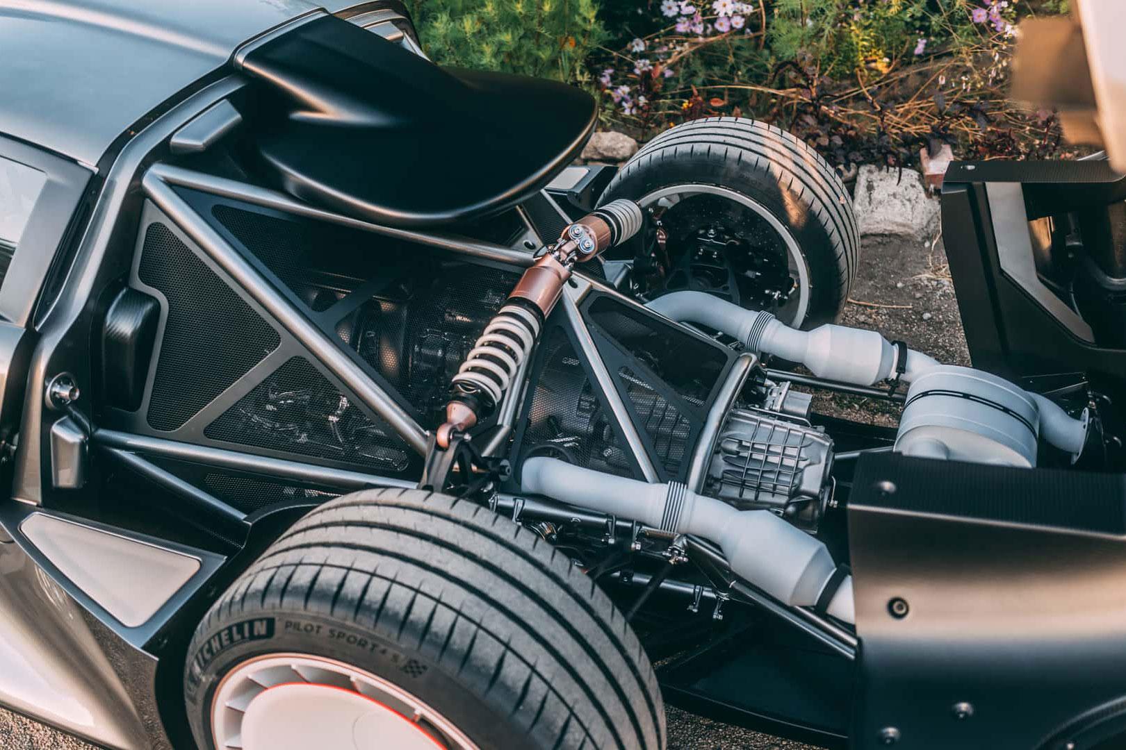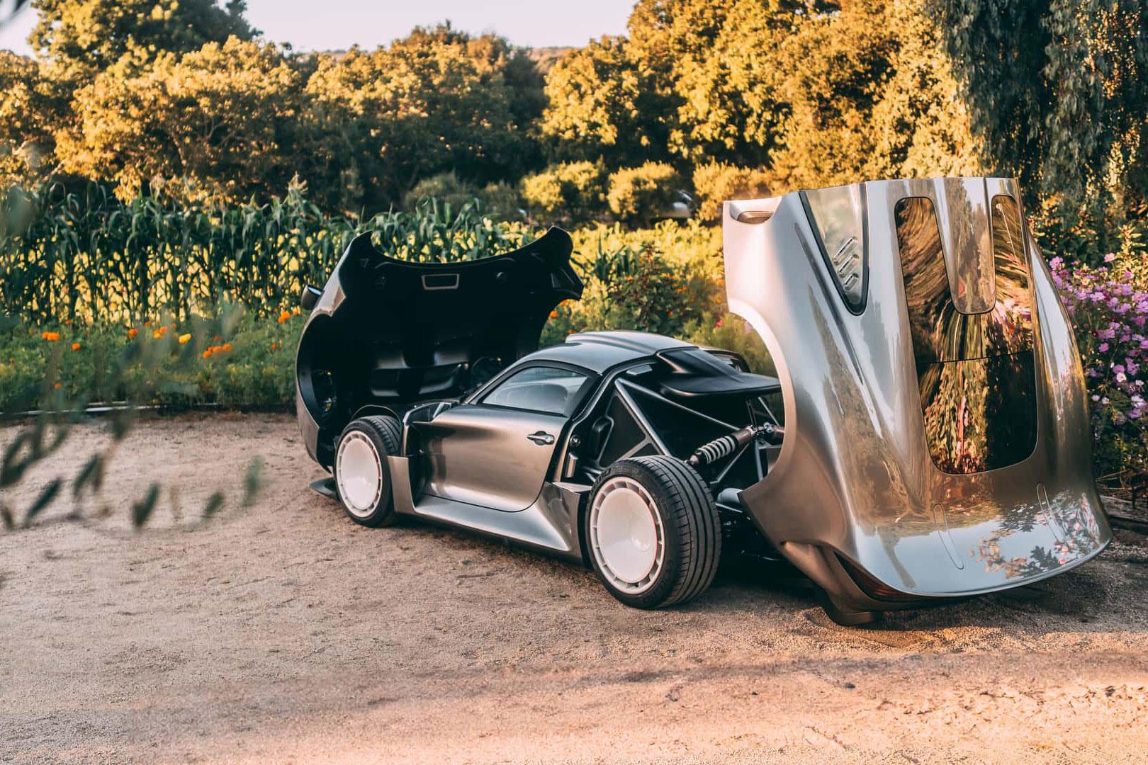 Für die Kraftübertragung stehen ein manuelles Schaltgetriebe oder ein Doppelkupplungsgetriebe zur Wahl. Das Fahrwerk besteht aus maßgeschneiderter Doppelquerlenkeraufhängung vorne und hinten, ergänzt durch Karbon-Keramik-Bremsen und einen FIA-zertifizierten Überrollkäfig. Selbstverständlich kommt die Karosserie komplett aus Kohlefaser, designt von Florian Flatau, einem ehemaligen Mitarbeiter von Singer.
