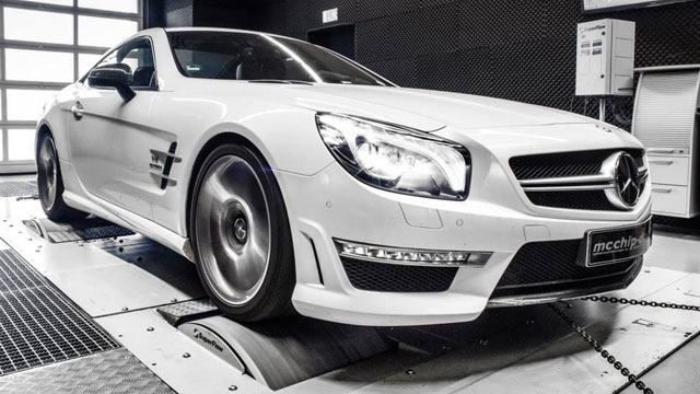 {werbung}Für knapp 160.000 Euro steht der Mercedes SL 63 AMG mit seinem aufgeladenen 5,5-Liter-V8 unter der Haube in der aktuellen Preisliste. Wer nach dieser Investition noch Luft nach oben hat und wem nach mehr Power gelüstet, der sollte nun die Ohren Spitzen. Denn die Jungs von Mcchip-DKR bieten ab sofort ihre „Software Stage 3“ an (inkl. Sportkats), die die Leistung von 537 PS und 800 Newtonmeter auf 704 PS und 1070 Nm anhebt. Zu den zweifelsohne verbesserten Fahrleistungen und dem Preis für das Kit schweigt sich der Tuner bislang allerdings leider aus. Serienmäßig geht es im heckgetriebenen Roadster-Coupé in 4,3 Sekunden auf Tempo 100, abgeregelt wird bei 250 km/h.