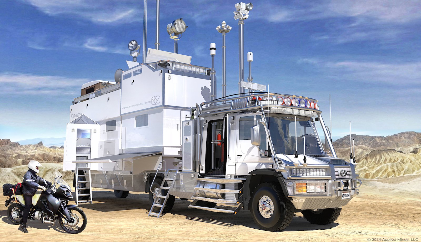 Nein, das ist weder ein Spielzeug aus der LEGO Phantasiewelt, noch das neue Aufklärungsfahrzeug der NASA. Das ist der KiraVan von Bran Ferren. Den niedlichen Namen hat er der Tochter des Entwicklers zu verdanken. Für die Vierjährige wollte der Amerikaner das ultimative Expeditions- und Reisemobil bauen.