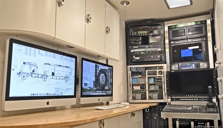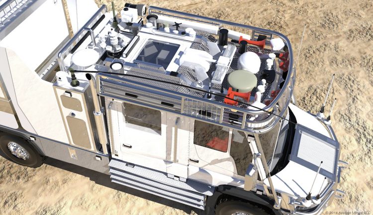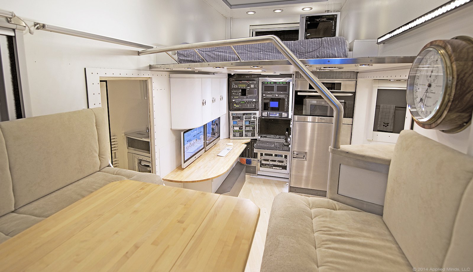 Damit die Fuhre immer in Bewegung und bei Kräften bleibt, wurden ein 770 Liter fassender Dieseltank sowie zwei mit Diesel betriebene Generatoren mit je 34 PS installiert. Außerdem sollen Solarmodule die Energieversorgung unterstützen. Und auch für die Besatzung des KiraVan ist vorgesorgt: Zwei Ebenen mit mehreren Schlafräumen, ein geräumiges Badezimmer sowie Aufenthaltsraum, Küche und Forschungslabor schaffen ein Rundum-Sorglos-Paket. Während im Heck das KiraBike (eine Enduro für den Kurztrip aufs Land) wartet, braucht es für die Kommandozentrale vorne bald schon einen ausgebildeten Piloten: Alleine hier sind 11 Informationsdisplays und unzählige Knöpfe verbaut.