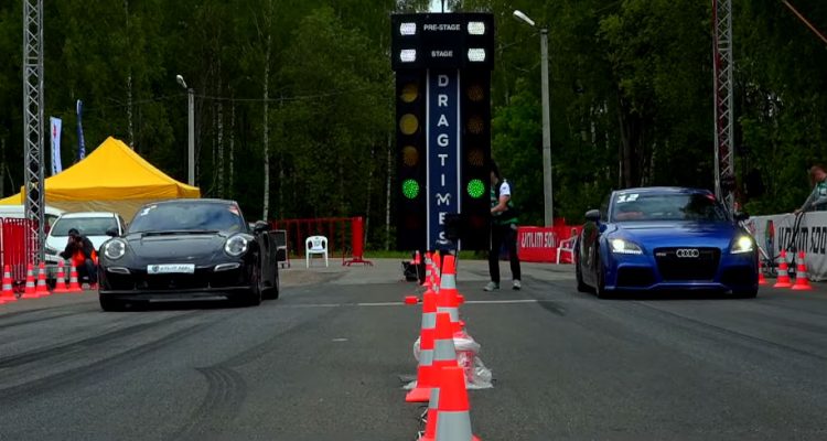 Statt der serienmäßigen 560 PS bringt es der Boxer im Heck dieses Porsche 911 Turbo S (991) auf immerhin 650 PS. Man meint, dass sollte locker reichen, um einen Audi TT RS zu knacken – auch wenn dieser mit 600 PS im Futter steht. Allradantrieb haben zwar beide, aber der Porsche bringt fast 200 Kilogramm mehr auf die Waage. Also, wie geht das Duell aus?