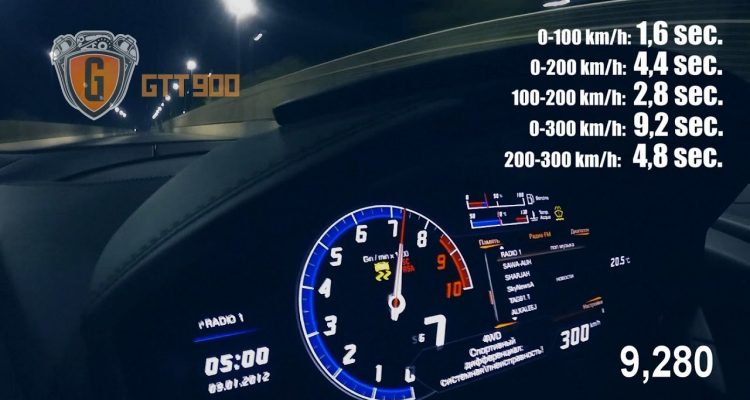 Tja, wer auf einem 5,2-Liter-V10 noch zwei Turbos packt, den Druck raufschraubt und vernünftigen Sprit tankt, der kommt eben auch etwas schneller vom Fleck als das Serienmodell – in diesem Falle ein Lamborghini Huracan. In Zahlen liest sich das dann so: Nach aberwitzigen 1,6 Sekunden fällt die 100er-Marke, nach 4,4 Sekunden stehen 200 km/h auf dem Tacho und an 300 km/h stürmt man nach nur 9,2 Sekunden vorbei. Ebenfalls beeindruckend: von 100-200 km/h vergehen nur 2,8 Sekunden. Wo der Topspeed liegt? Wir schätzen auf über 400 km/h. Im Video sieht das dann wie folgt aus …