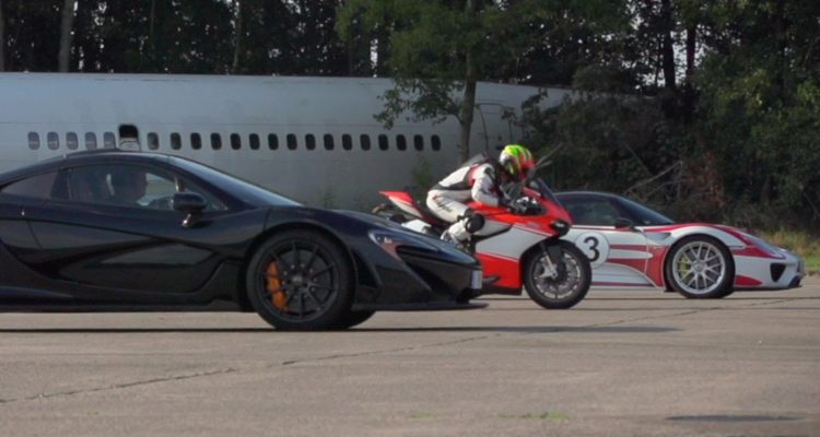Eigentlich wollten die Jungs von Autocar auch einen Ferrari LaFerrari zu den beiden Kontrahenten Porsche 918 Spyder und McLaren P1 auf die Piste schicken, doch die Italiener weigerten sich. Nun gut, dann eben eine andere, rote Diva aus Italien. Und so namen die Briten kurzerhand eine Ducati 1199 Superleggera (auch wenn Ducati ja inzwischen zu Audi gehört). Also, wer gewinnt das Duell?