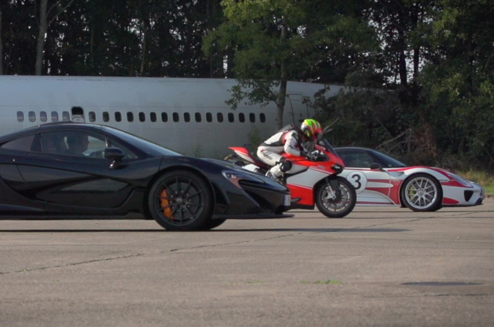 Eigentlich wollten die Jungs von Autocar auch einen Ferrari LaFerrari zu den beiden Kontrahenten Porsche 918 Spyder und McLaren P1 auf die Piste schicken, doch die Italiener weigerten sich. Nun gut, dann eben eine andere, rote Diva aus Italien. Und so namen die Briten kurzerhand eine Ducati 1199 Superleggera (auch wenn Ducati ja inzwischen zu Audi gehört). Also, wer gewinnt das Duell?