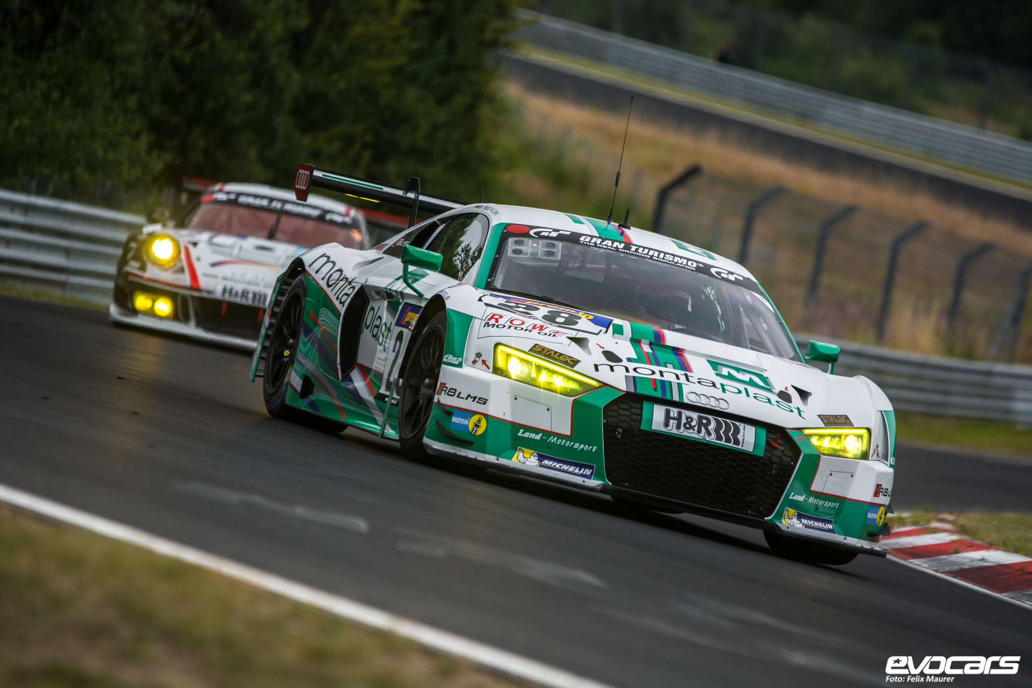 Der knapp unterlegene Bergmeister war im Ziel sichtlich geknickt, selbst wenn er zusammen mit Michael Ammermüller den ersten Podestrang für Manthey-Racing mit dem neuen Porsche 911 GT3-R einfahren konnte. „Ich hatte gehofft, dass mein Vorsprung reichen würde“, sagte er. In einem ebenfalls sehenswerten Überholmanöver hatte er eingangs der letzten Runde Mies noch niedergerungen. Zuvor waren beide rundenlang im Abstand von weniger als einer Sekunde über die Nordschleife gerannt. „Der Audi hat einen Top-Speed-Vorteil“, analysierte Bergmeister. Mies entgegnete: „Aus meiner Sicht verfügt der Porsche über deutlich mehr Abtrieb; das habe ich heute rundenlang studieren können.“ Wahrscheinlich liegen beide richtig. Unterschiedliche Fahrzeugkonzepte auf absolut gleichem Leistungsniveau, nach vier Stunden Renndistanz (28 Runden oder umgerechnet 682,024 Kilometern auf der Nordschleife) Zeitabstände im Zehntelbereich – spannender kann Motorsport kaum sein.
