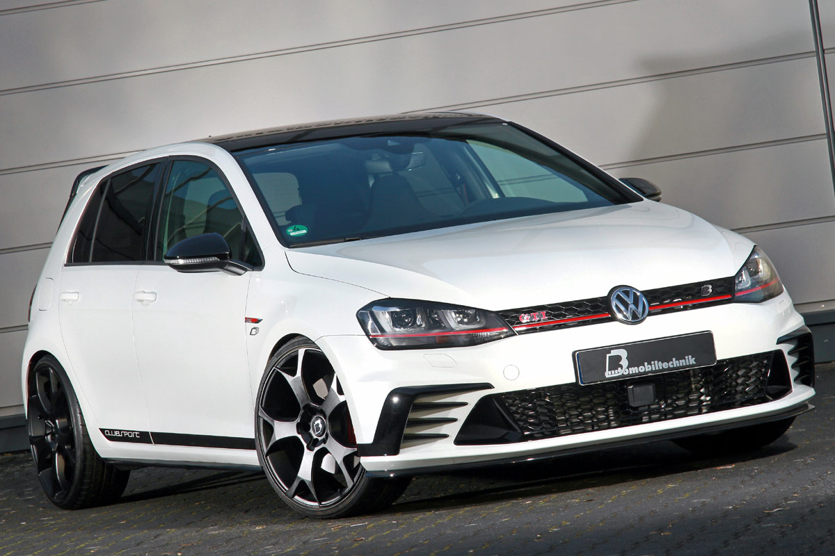 Wie schnell der VW Golf GTI Clubsport (265 PS, 350 Nm) und der Clubsport S (310 PS, 380 Nm) unterwegs ist, wisst ihr. Doch selbst mit solch einer Performance kann man natürlich nur bedingt zufrieden sein, steckt doch wesentlich mehr Potenzial im Zweiliter-Triebwerk. Tuner B&B Automobiltechnik aus Siegen sieht das ähnlich und entlockt dem Zweiliter-Turbo in einem vierstufigen Programm bis zu 480 PS und 620 Nm. In dieser höchsten Ausbaustufe geht’s in 4,5 Sekunden auf Tempo 100 (vorher 6,3sek.) und in nur 12,8 Sekunden auf Tempo 200 (vorher 22,5 sek.). Den Topspeed gibt der Tunier mit 285 km/h an (vorher 250 km/h).