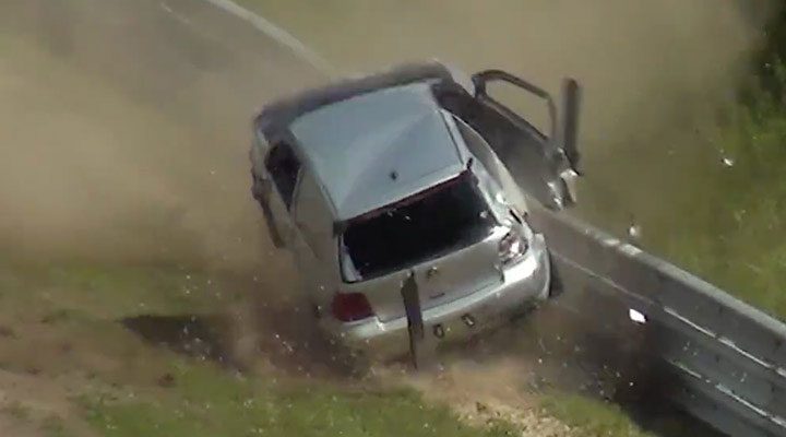 Eins vorweg: Wie im Video zu sehen ist, ist dem Fahrer dieses VW Golf IV R32 nichts wesentliches passiert, er konnte seinen verunfallten Wagen alleine verlassen und ist noch mal mit dem Schrecken davon gekommen. Sein Tracktool indes muss wohl durch ein neues ersetzt werden. Vielleicht findet sein Fahrer ja bei unserem Partner-Magazin TRACKTOOLS ein paar Anregungen für ein neues Spielzeug ….