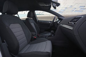 Für eine sportliche Note auch im Innenraum sorgt – wer hätte es gedacht – das R-Line Interieur-Paket. Es kostet 640 Euro für Modelle mit der Ausstattungslinie Highline und 945 Euro für Comfortline-Modelle. Es setzt sich zusammen aus Dekoreinlagen in Aluminiumoptik „Black Lead Grey“ für Instrumententafel und Türverkleidungen, vorderen Einstiegsleisten aus Edelstahl, einem schwarzen Dachhimmel, Edelstahl-Pedalkappen, Sportsitzen (Stoff Dessin „Race“, Wangeninnenseiten in Microfaser „San Remo“, mit „R-Line“-Logo im Vordersitz), Ambientebeleuchtung und einem Leder-Sport-Multifunktionslenkrad mit R-Line-Logo. Alternativ wird auch die Lederausstattung „Vienna“ für das R-Line Interieur“ Paket angeboten (für Highline zum Preis von 1755 Euro und für Comfortline zum Preis von 2115 Euro).