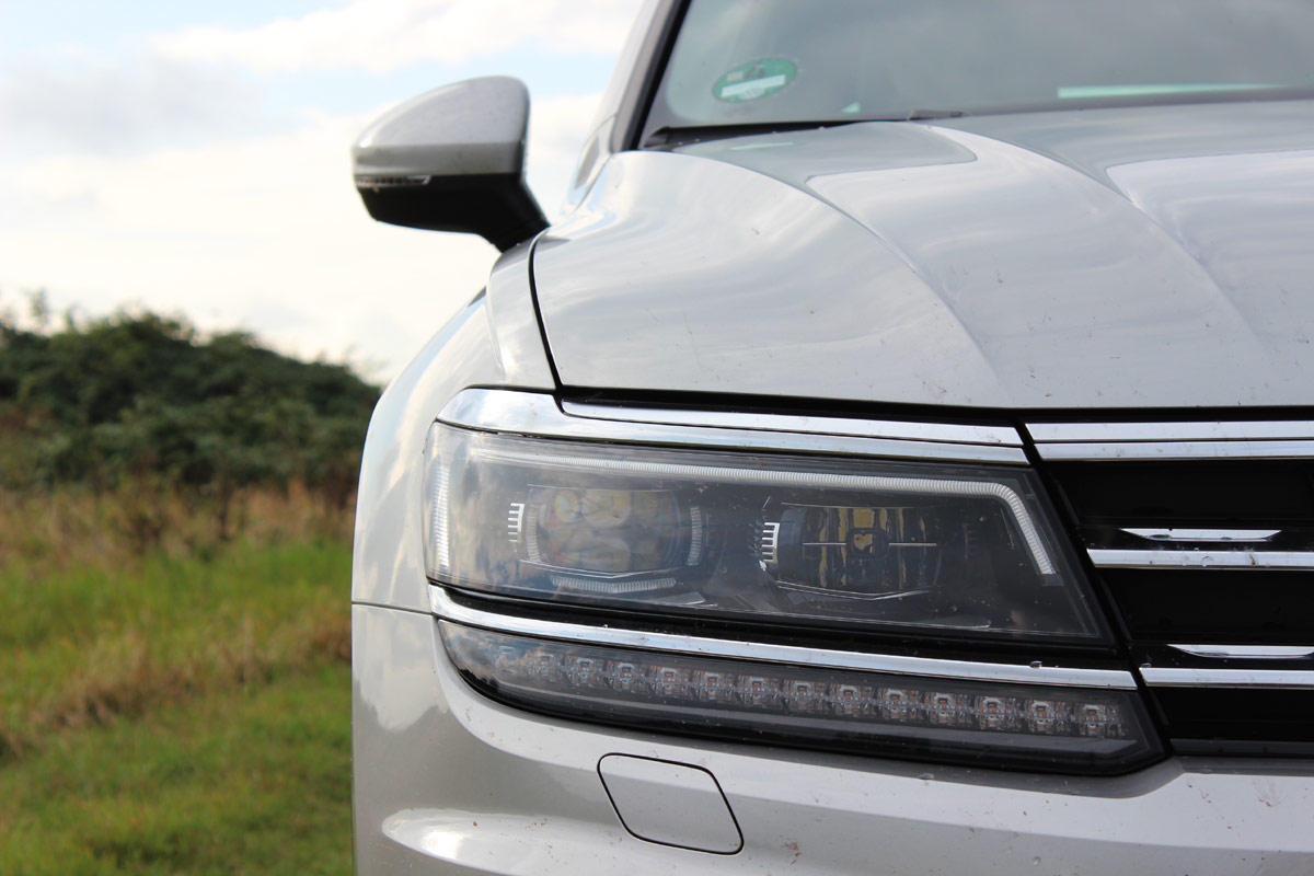 Schick steht er da vor uns, der neue Tiguan. Naja gut, so ganz neu ist er dann doch nicht, immerhin steht die aktuelle (zweite) Generation seit gut einem Dreivierteljahr bei den Händlern. Doch „schick“ war ja unser Einstieg, und den hat der SUV auch seiner Farbe zu verdanken: Tungsten Silver Metallic gab es auch schonmal bei Aston Martin und sie verleiht dem Tiguan für 565 Euro Aufpreis einen äußerst edlen Auftritt.