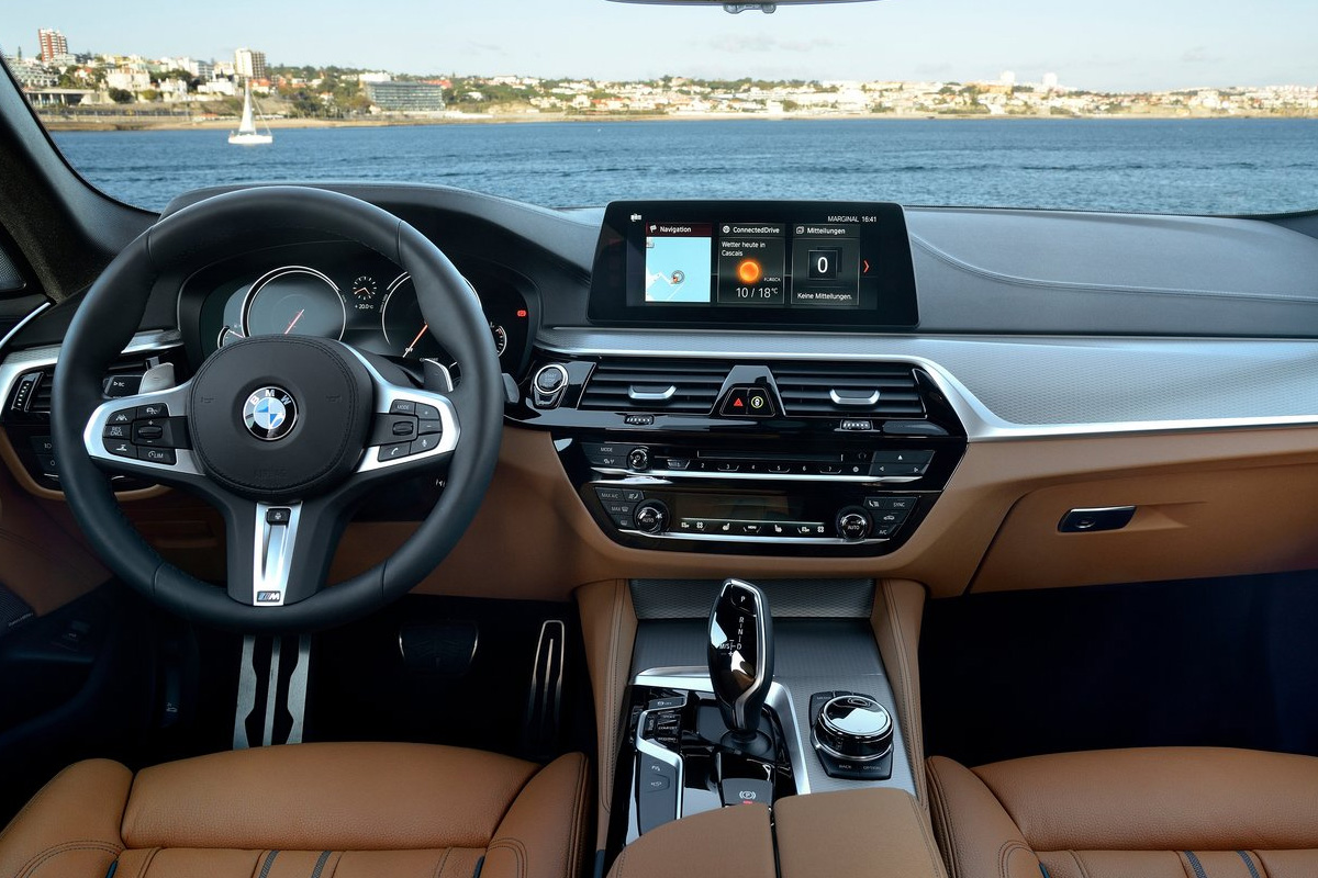 Gelungen ist auch der neue Innenraum; zuletzt konnten wir uns mit der Verarbeitungsqualität bei BMW nicht wirklich anfreunden. Beim G30 hat BMW allerdings die Messlatte auf Audi-Niveau gehoben. Alles sitzt und passt – Leder sieht wie Leder aus (und fühlt sich auch so an), Kunststoffflächen sind größtenteils ausgeschäumt und die Innentaschen der seitlichen Ablagefächer sind mit Teppich ausgelegt. Ja, so mögen wir das. Ein weiterer Pluspunkt: die hervorragenden Sportsitze, die eigentlich ein Muss für jeden 5er-Käufer sind. Mit dem optionalen Ambiente-Lichtpaket hat man für jeden Anlass eine farbliche Untermalung parat und das dicke M-Lenkrad liegt bestens in der Hand.
