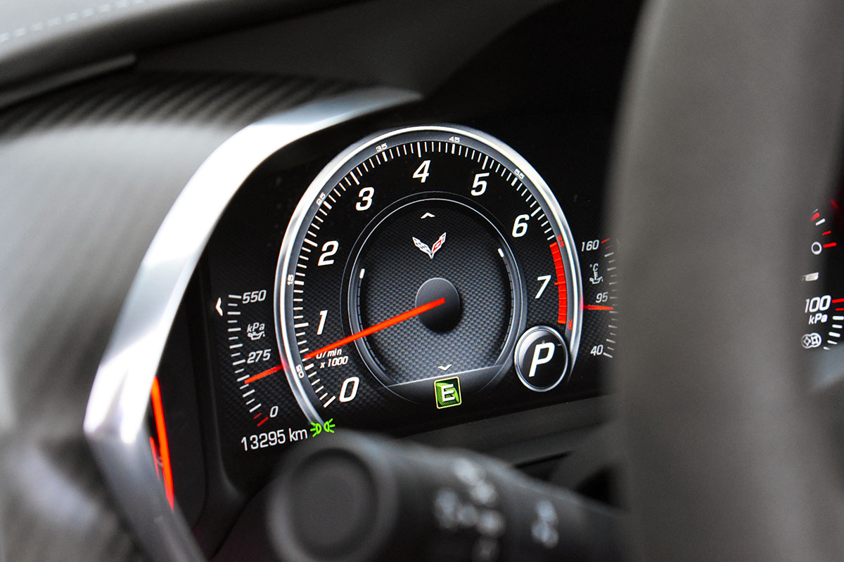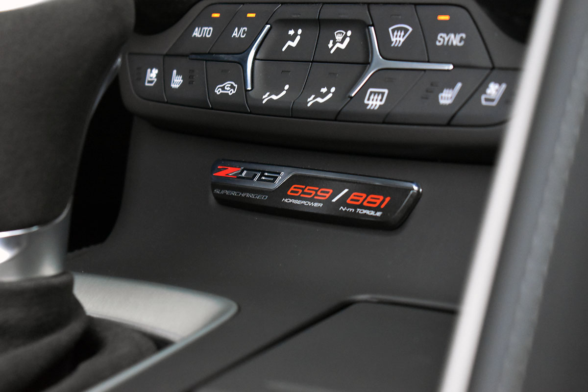 Aber das ist es, was diesen Sportwagen ausmacht. Nicht du tanzt mit ihm, sondern er mit dir. Gezähmt will die Corvette Z06 werden – durch ihre tolle Lenkung, dem im Track-Modus brettharten Magnetfahrwerk und der zackig schaltenden 8-Gang-Automatik (wir empfehlen dennoch klar den Handschalter) hat man dazu auch das passende Rüstzeug parat. Über den Sechszweier im Bug der Z06 brauchen wir uns nicht groß auszulassen: Er ist ein großartiger Motor, ein V8-Sahnestück der bereits als Sauger überzeugt und durch den aufgesetzten Kompressor in jeder Lebenslage einfach nur noch besser wird. Wer bei diesem Triebwerk nach dem Verbrauch fragt hat sich in der Regel für das falsche Auto entschieden, aber dennoch: Auf Überlandfahrten sind knapp unter 10 Liter Super Plus möglich, wer der Corvette Z06 kräftig die Sporen gibt kann natürlich auch mehr als das Doppelte verbrauchen.